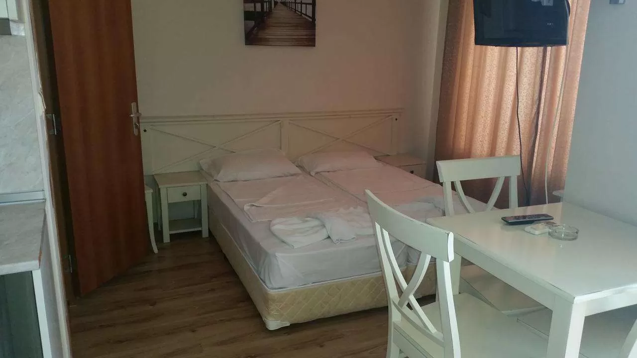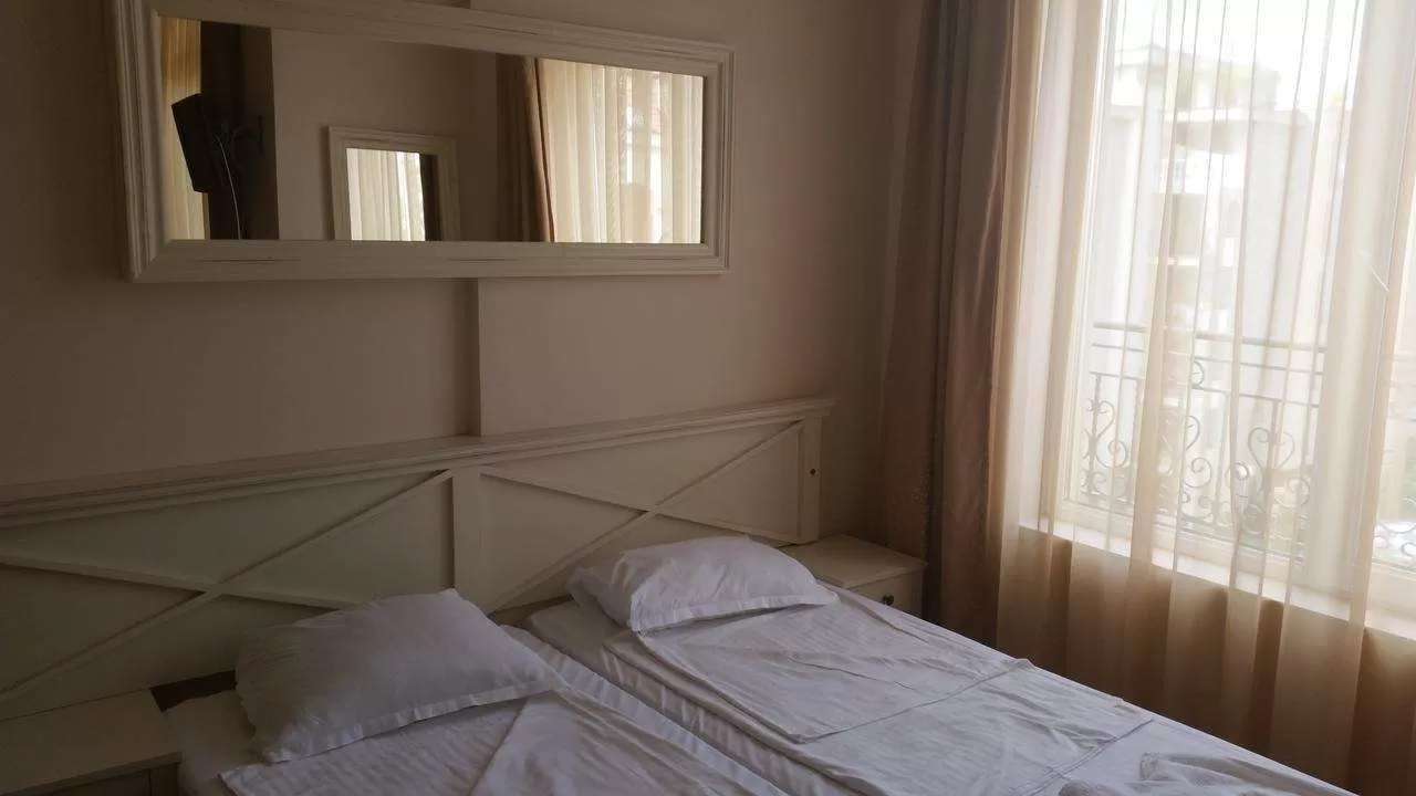В номерах: доп. кровать (диван-кровать)• полностью оборудованный кухонный бокс (без духовки)• индивидуальный кондиционер• спутниковое TV• холодильник• телефон• Wi-Fi (за доп. плату)• санузел с душем• балкон• пол – ламинат • уборка номера – ежедневно• смена белья – 1 раз в неделю• смена полотенец –3 раза в неделю.
