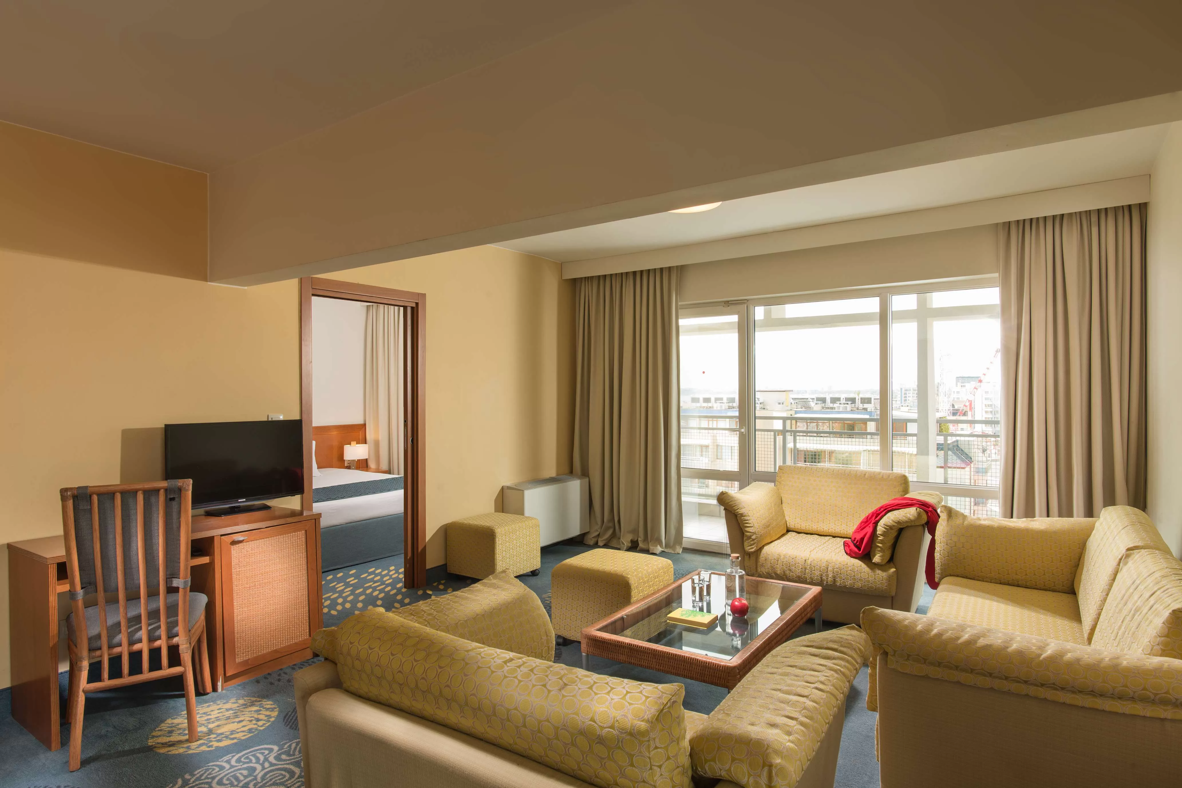 В номере: доп. кровать (кресло-кровать) • центральный кондиционер • спутниковое TV • мини-бар (за доп плату) • телефон (за доп плату) • санузел с душевой кабиной и феном • балкон • пол – ковровое покрытие • уборка номера – ежедневно • смена постельного белья – 2 раза в неделю • смена полотенец – 2 раза в неделю.