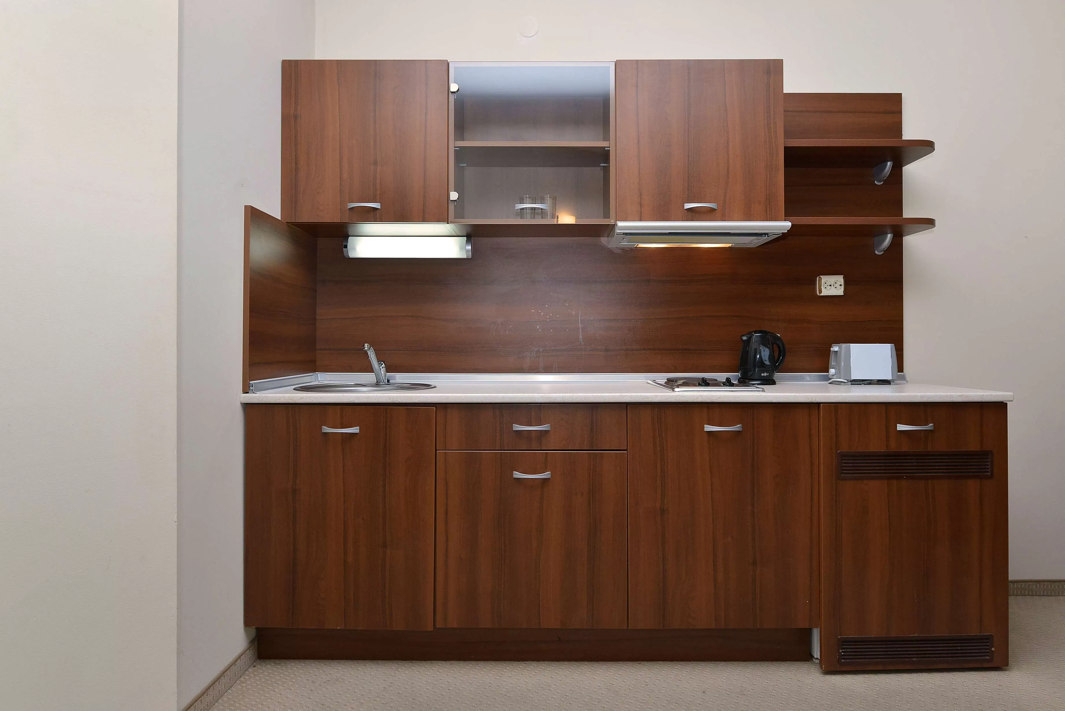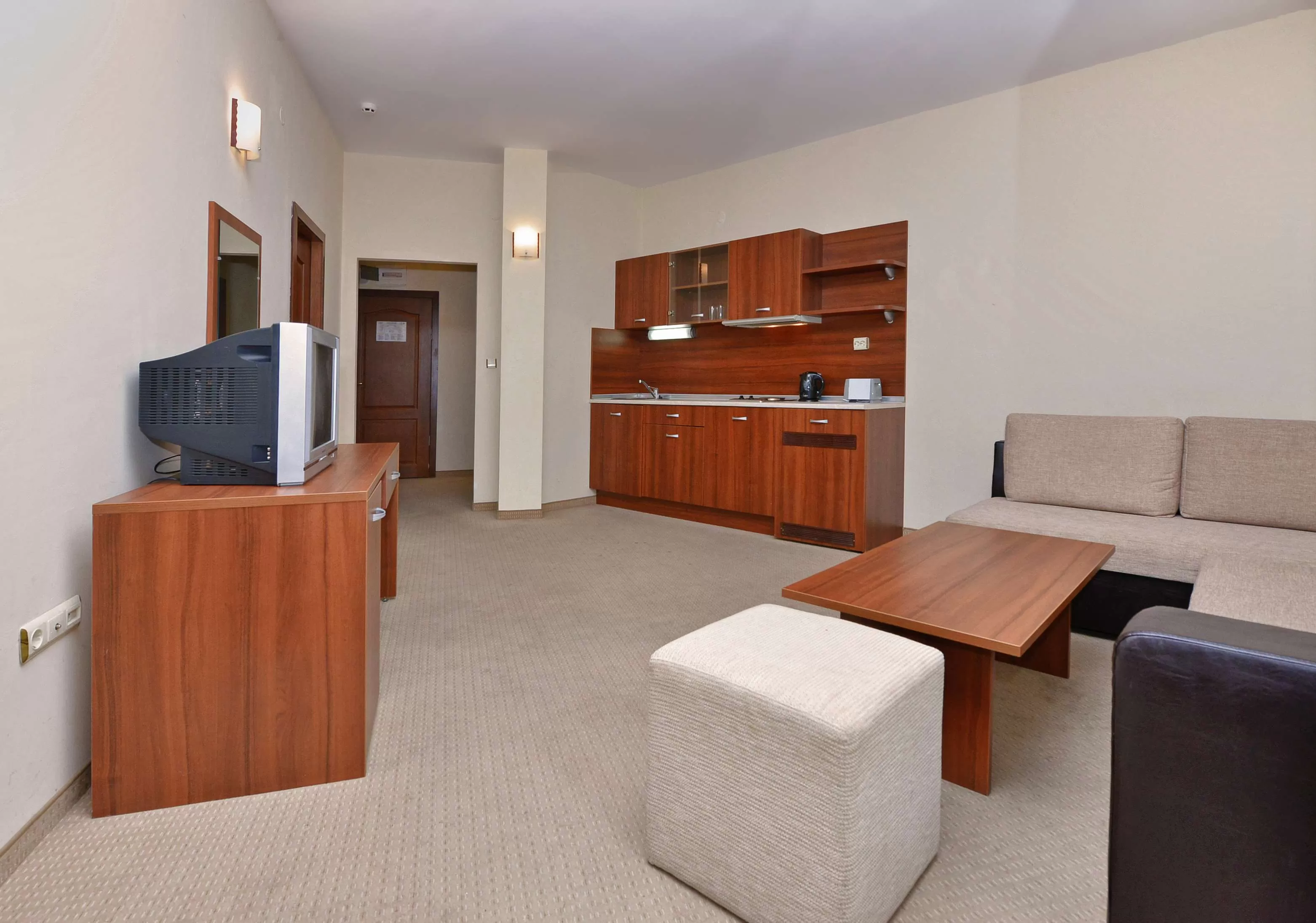 Ванная комната / душ, балкон, кондиционер, холодильник, тостер, микроволновая печь, плита, вытяжка, телевизор.