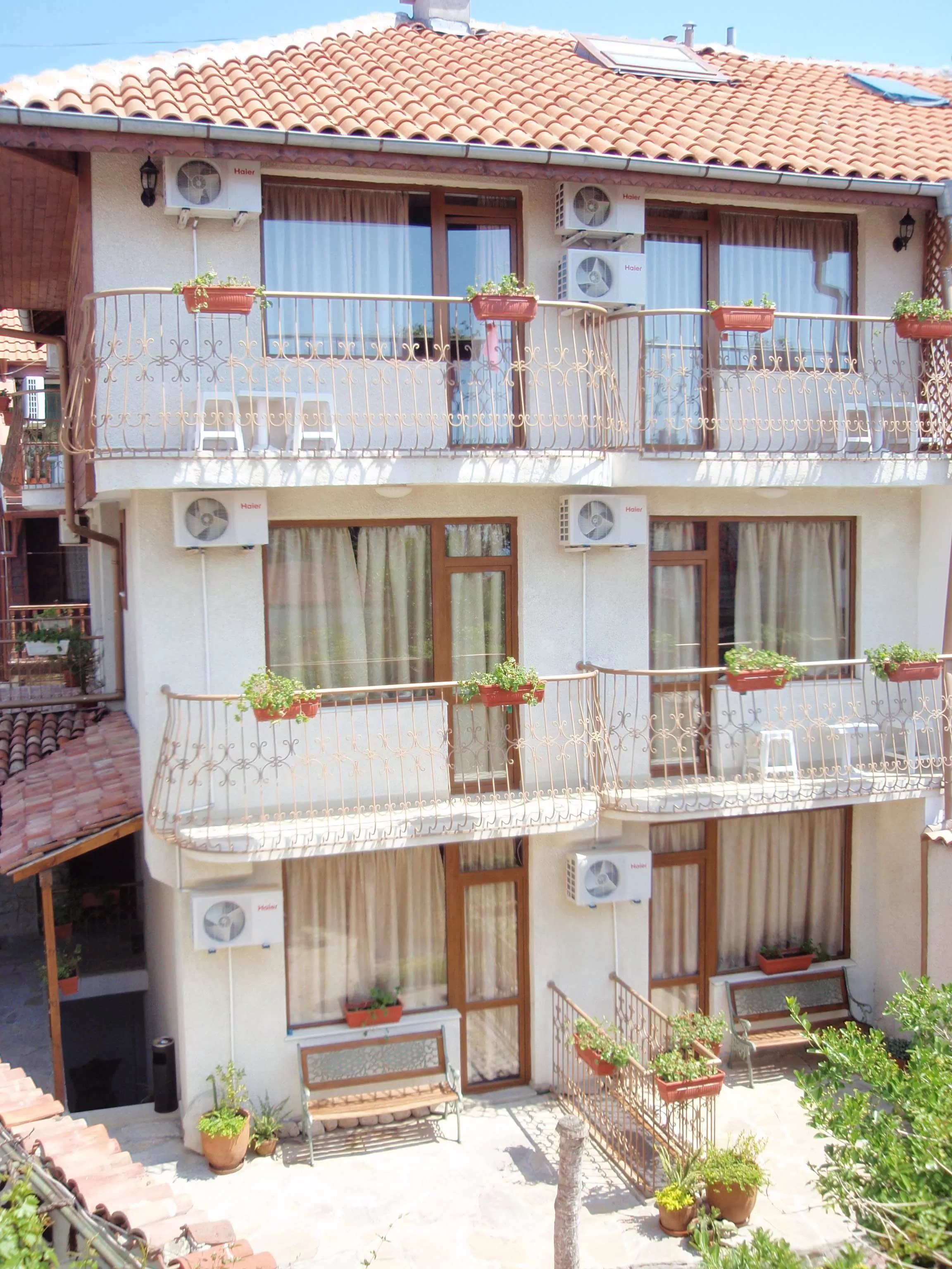 Небольшой отель Kirios 3* построен в духе Старого города и утопает в цветущем саду. Отель находится в 100 метрах от побережья Черного моря. В пределах пешей прогулки от отеля расположено множество ночных клубов, ресторанов, баров.