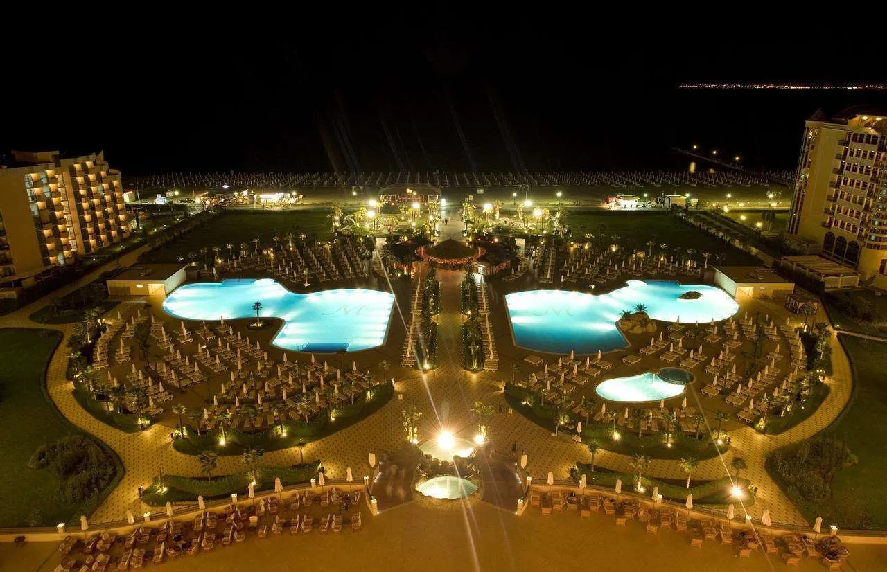 Бесплатно: 2 открытых бассейна; фитнес-зал; настольный теннис; дартс; пляжный волейбол; аэробика; аква-гимнастика; анимационные программы.
