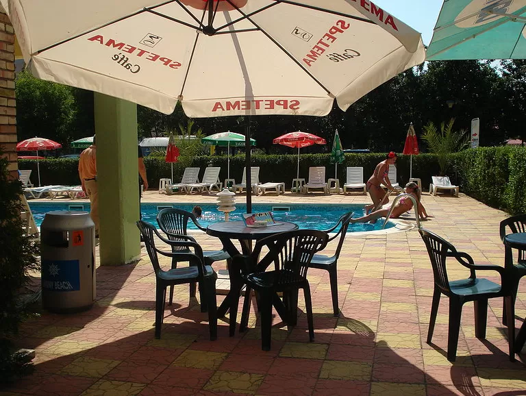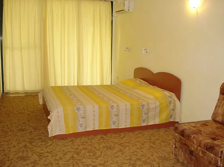В номерах: кондиционер(не во всех номерах) •Телевизор (спутниковое телевидение) •Телефон •Холодильник •Интернет – /€/ •Балкон или терраса /2 стула/ •Доп. кровать •Уборка – каждый день•смена полотенец – каждые три дня•постельное белье – каждые 6 дней•На полу – ковролин.