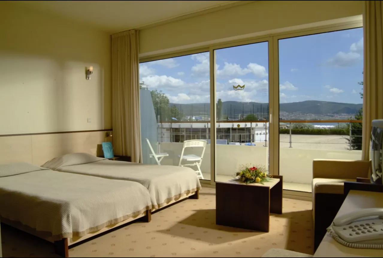 Согласно болгарскому законодательству, курить в помещении отеля запрещается, разрешается курить только на улице.