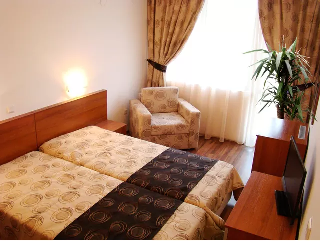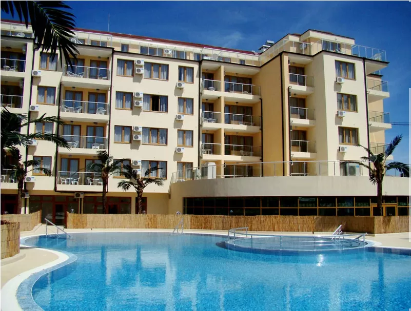 Отель расположен в южной части курорта, расстояние до пляжа – 500м.