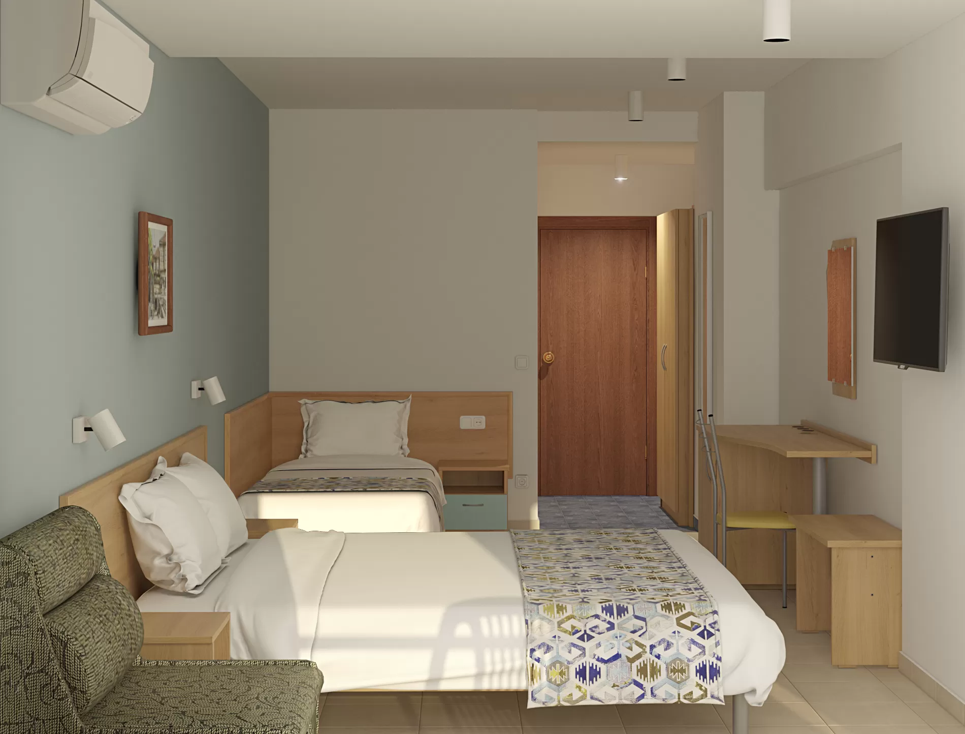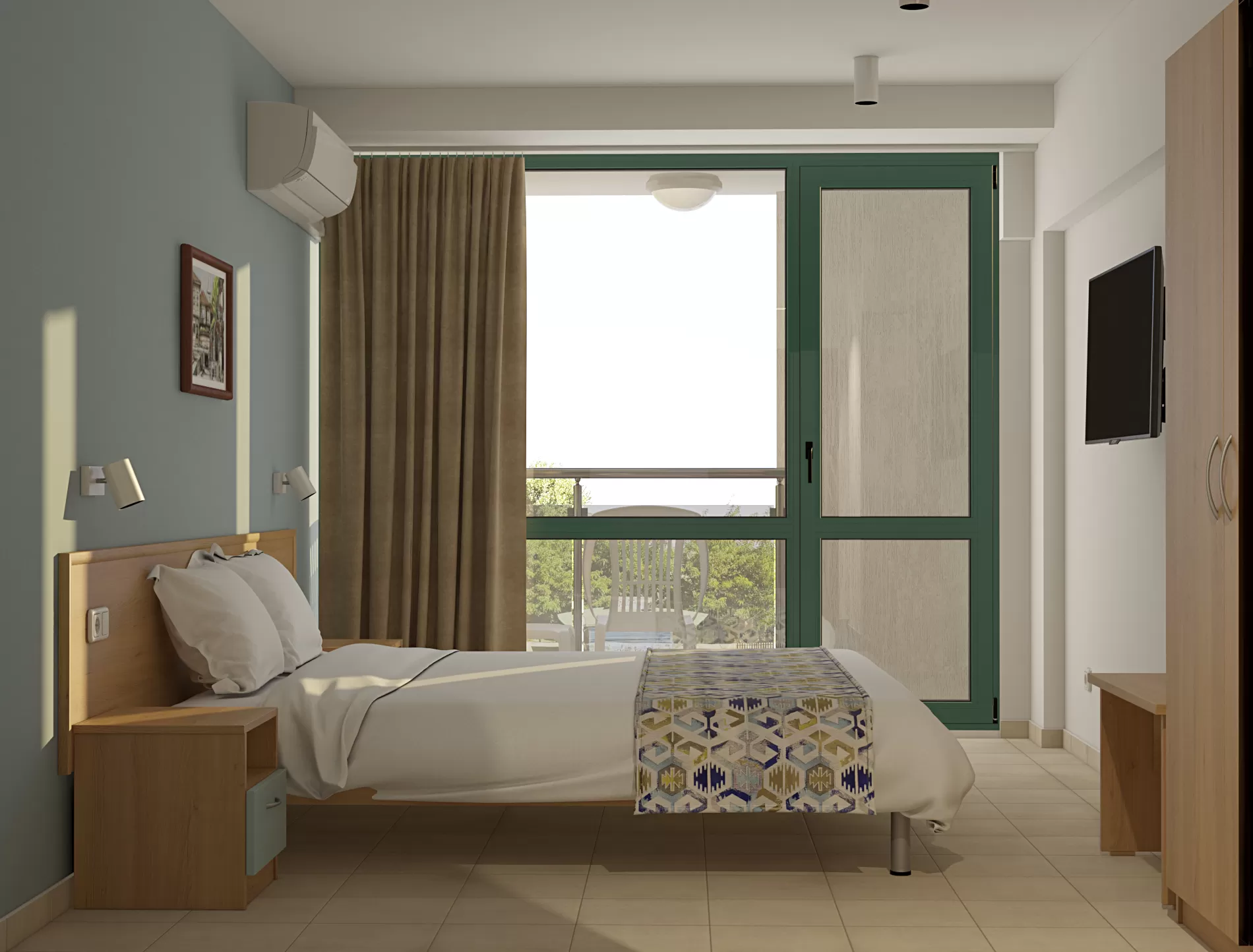 Все номера оснащены кондиционером, мини-баром и телевизором со спутниковыми каналами, а также располагают балконом с видом на море и собственной ванной комнатой с душем. Wi-Fi во всех номерах.