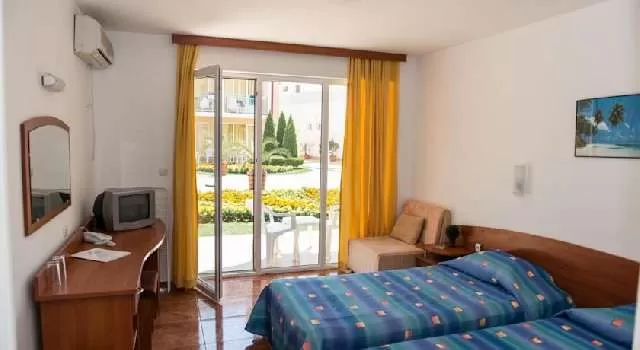 В номерах: • кондиционер • TV • телефон • холодильник • интернет (за доп.плату) • балкон или терасса • доп. кровать – раскл. диван • уборка – каждый день • смена полотенец – каждые три дня • постельное белье – каждые три дня • на полу – ковролин / плиты.