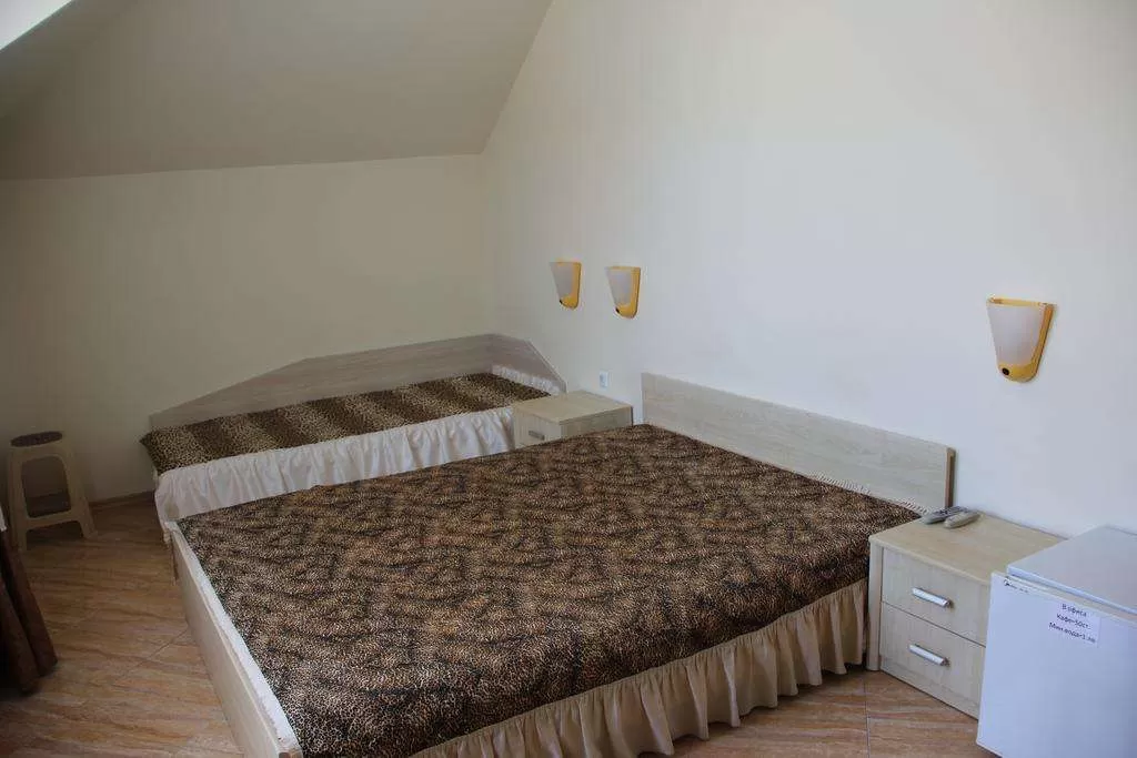 В номерах: кондиционер • TV • Мини бар •Интернет• Холодильник •Сейф • Балкон или терраса /стол + 2 стула/ • Дополнительная кровать – раскладное кресло • Уборка – каждый день • смена полотенец – каждые три дня • постельное белье – каждые три дня • На полу –плитка.