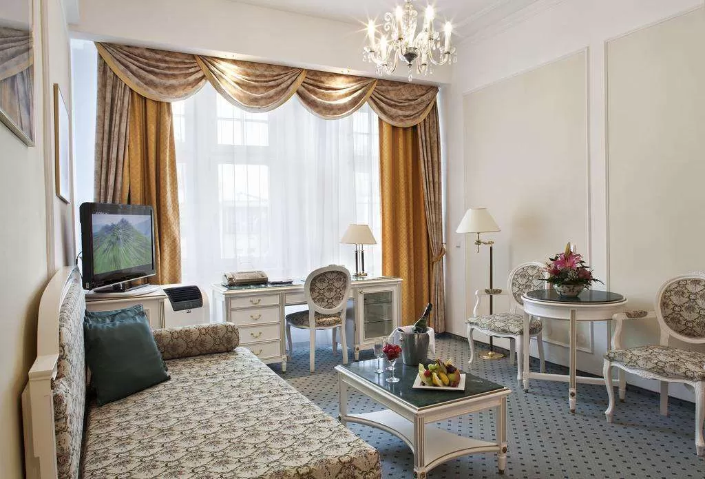 Junior suite: Комфортабельный апартамент, в ванной комнате ванна джакузи и душевая кабина, 1 гостиная, 1 спальня, размер кровати king size 100% TWIN, возможны дополнительная и детская кровати, размер номера от 45м².