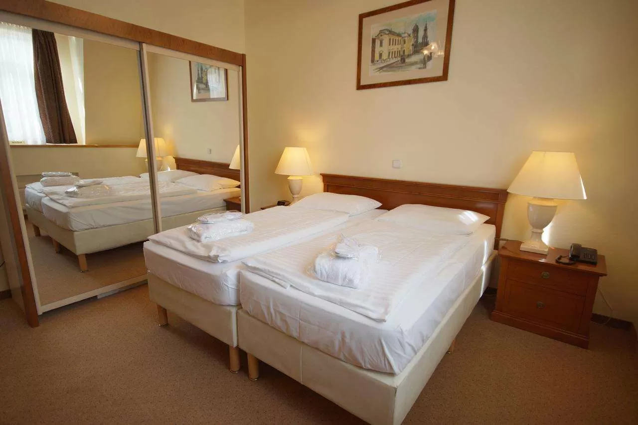 Lux: комфортабельный номер, некоторые номера с балконом, в ванной комнате ванна или душевая кабина, размер кроватей 2 — 90х200см или 1 — 180х200см, возможны дополнительная и детская кровати, размер номера 15м².