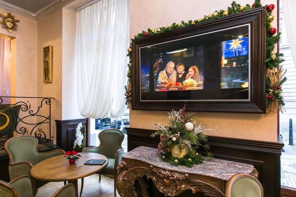 В отеле также находится ресторан международной кухни, расположенный в подвале. Обеды и ужины можно организовать по предварительному запросу.