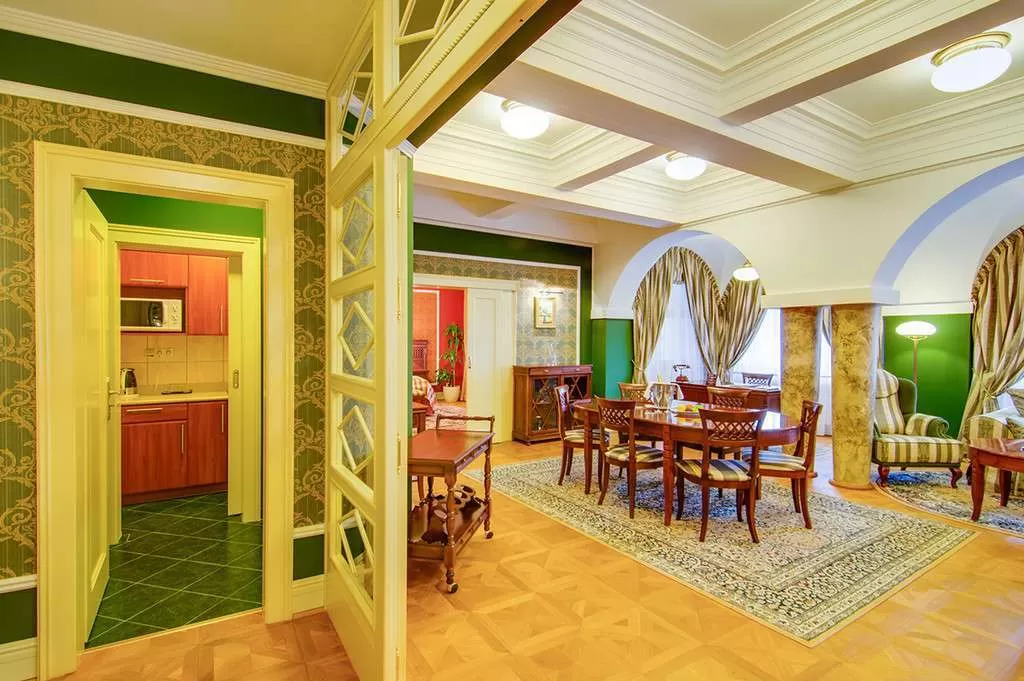 • Superior room: комфортабельный номер, 2 комнаты, некоторые номера с балконом, в ванной комнате ванна, туалет, биде, фен, халат, тапочки, мини-бар, размер кроватей 100х200см, возможны дополнительная и детская кровати. Бутылка минеральной воды при приезде. Питание в ресторане «Praga». Размер номера 40м².