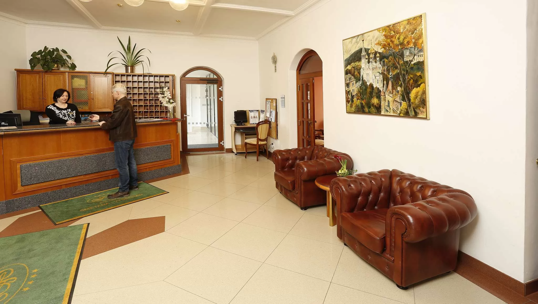 Расположен в живописном зеленом уголке Карловых Вар напротив русской православной церкви, у подножия гор.