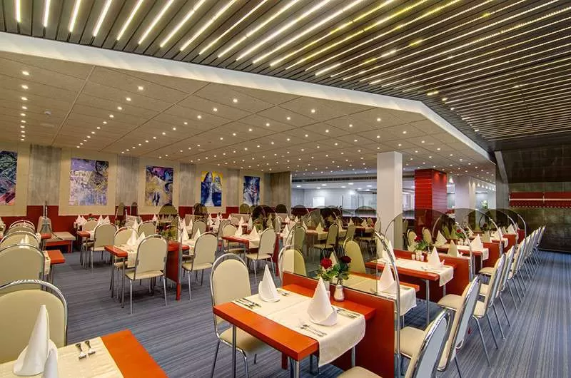 Рестораны: 3 ресторана, на 266+232+80 человек, лобби-бар на 60 человек, танцевальный клуб.