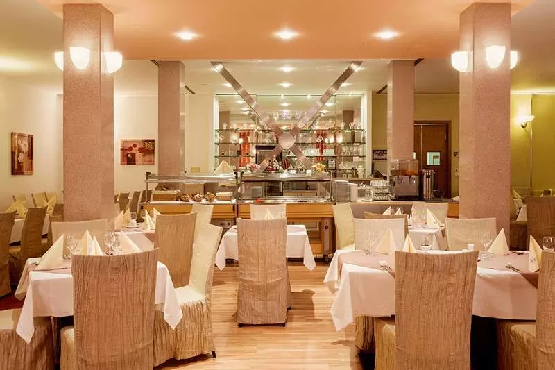 Завтраки, обеды и ужины проходят в ресторане отеля на 90 мест. В центре ресторана отведено место для танцев. На обед и ужин свободный выбор салатов и безалкогольных напитков. Теплые и горячие напитки к каждому блюду.