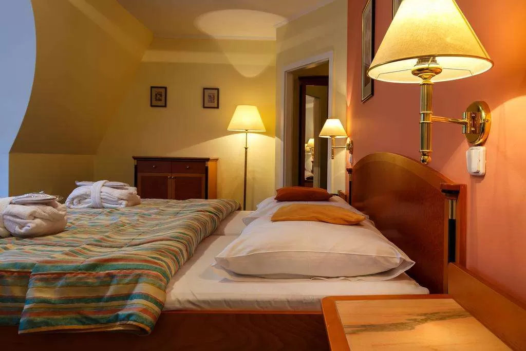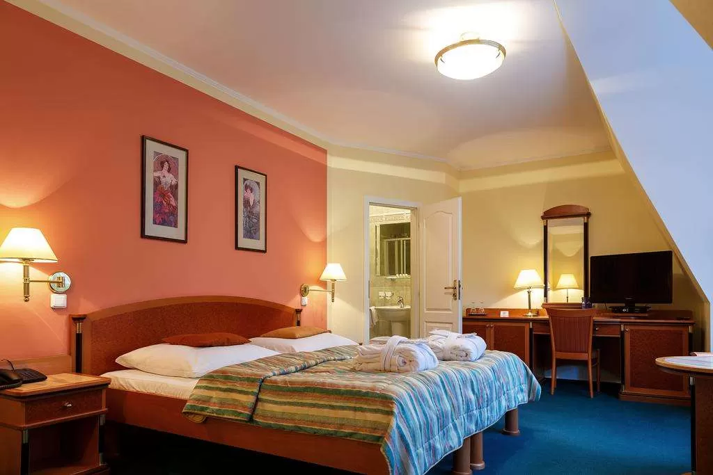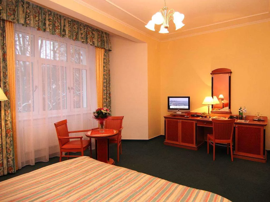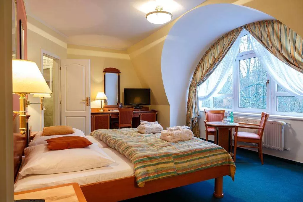 Отель расположен на окраине курортного центра, рядом с лесом, в тихом месте всего 200 метров от колоннады с источниками.