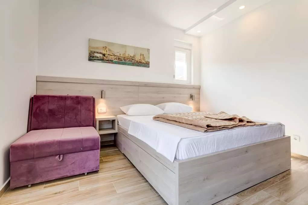 До аэропорта Тиват – 20 км, до Старого города Будвы – 1,5 км, до пляжа Могрен – 1,7 км. Продуктовый магазин в 300 м, ТЦ TQ Plaza и зеленый рынок – 800 м. До моря около 400 м через дорогу. Рядом находятся апартаменты Kala New, Azzuro, Rooms Ivanka.