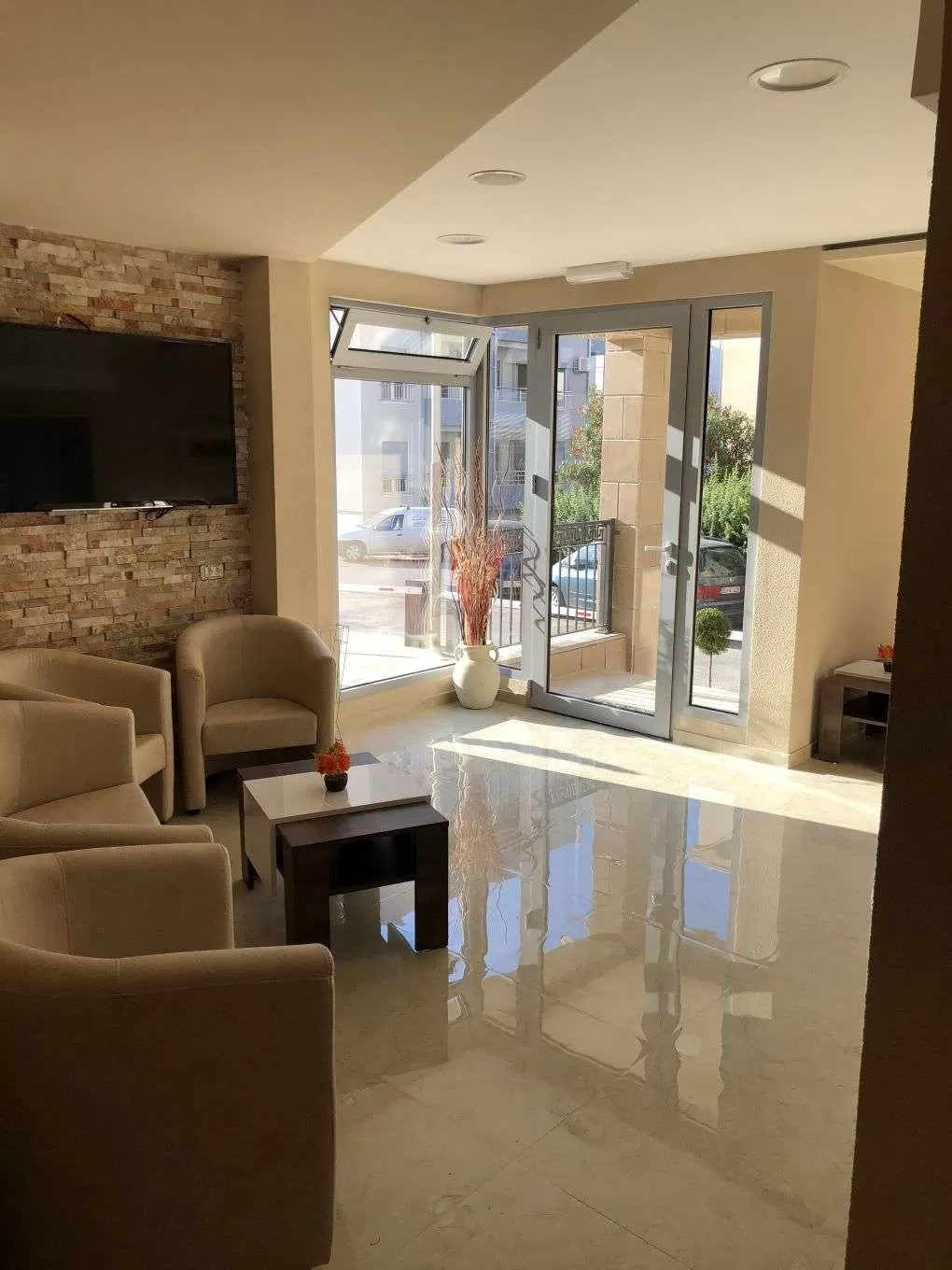В доме: 17 апартаментов с террасами, лифт, ресепшн 24 часа, платная парковка, прокат авто. Сервис: ежедневная уборка номеров, ежедневная смена полотенец, смена постельного белья – раз в 4 дня.