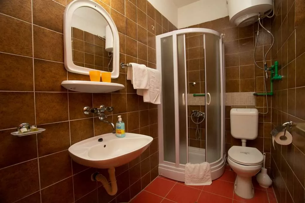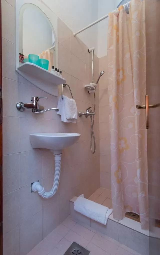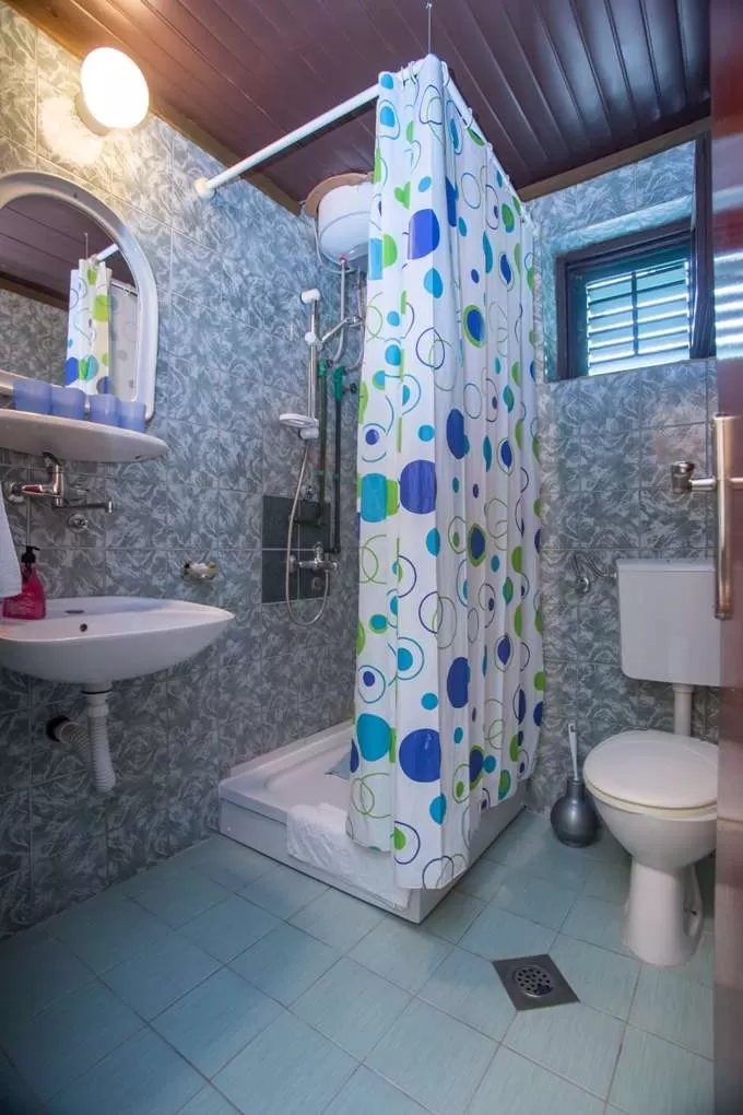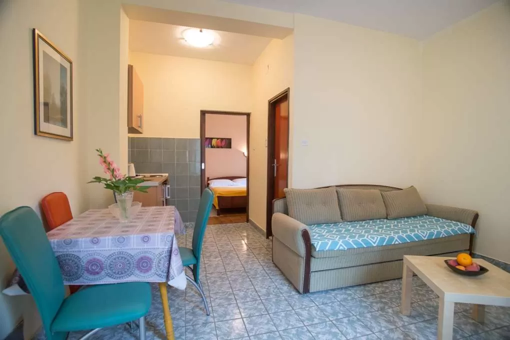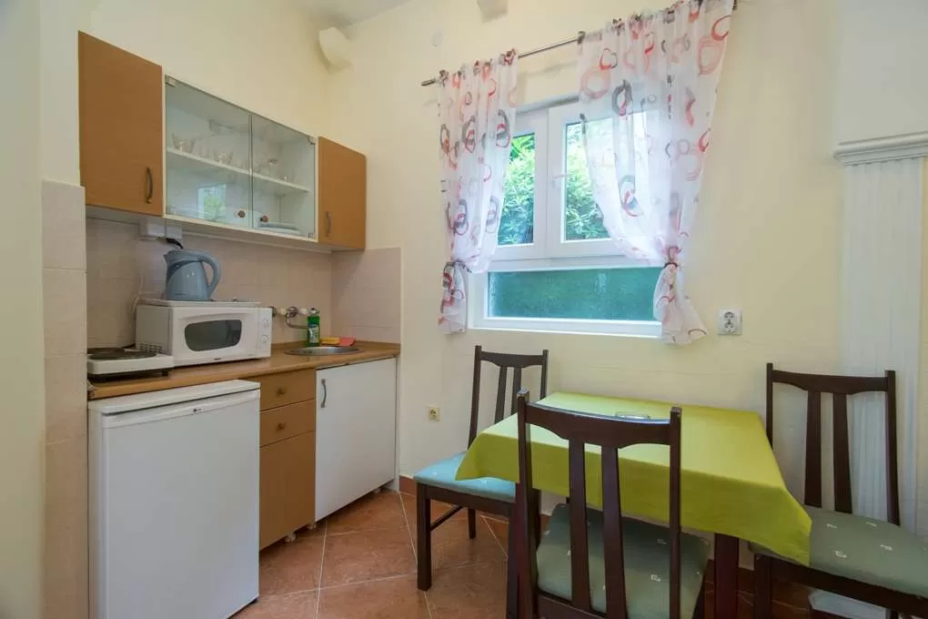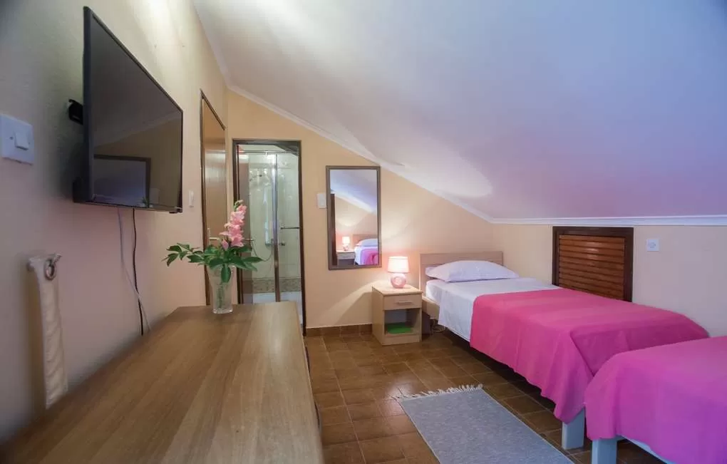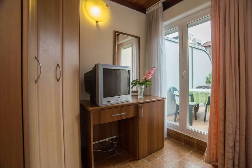 №3 APART First floor: 31м2, маленькая терраса и отдельный вход.  Гостиная с мини кухней. Спальня с французской кроватью + отдельная кровать. Ванная с занавеской.