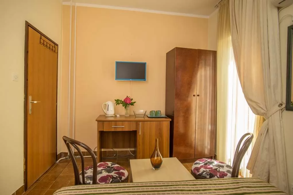 Во всех номерах: Интернет WI-FI, ТВ, кондиционер, мини-бар, сейф, фен. Полы - плитка.