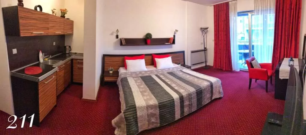 В номерах:  кондиционер, ТВ, сейф, чайные принадлежности, мини-бар (платно), ванная комната с душем, фен.