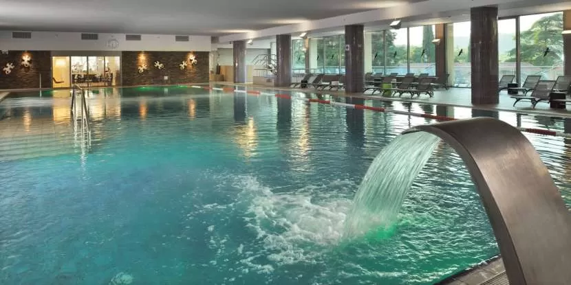 Лагуна – крытые и открытые бассейны с термальной водой (+27-+32 ºC), детский бассейн с игровой площадкой, подводный массаж.