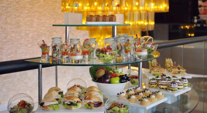- Всё включено (AI) - с 11:30 до 00:00. Включает: пиво, вино; безлимитное питание и напитки в баре UBK, в рестортане Nosh, в кафе Crema; нет ограничений для шведского стола или a la carte; предоставление 150 AED на человека для использования в Riva Beach Club на Palm Jumeirah; доступ в Crema Lobby (закуски и напитки); бесплатный Chocolate hour.