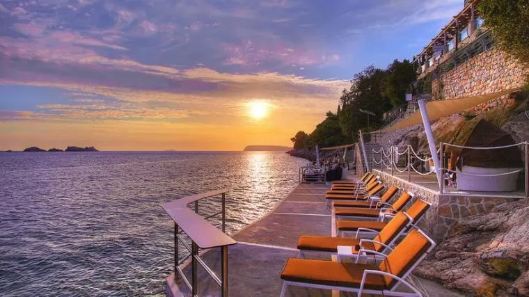 Отель расположен в спокойном месте, в окружении пышных зеленых пейзажей, прямо на берегу моря в живописной бухте Лапад, всего в 3 км от старого центра города Дубровник и в 23 км от аэропорта "Дубровник".