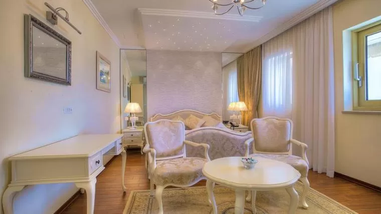 Номера с мраморным полом оформлены в классическом стиле.