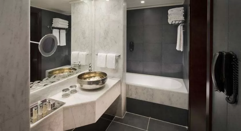 кондиционер, мини-бар, сейф, ванна, фен, телефон, утюг и гладильная доска, набор для приготовления чая и кофе, халат и тапочки, интернет