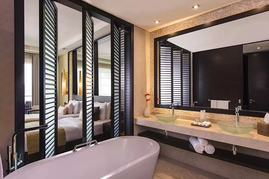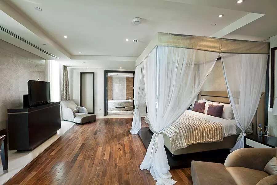 Благодаря разделению зоны досуга и спальной комнаты, номера Premium предлагают гостям комфортное проживание. В номерах, обставленных с роскошью Rixos и обещающих восхитительных отдых, на фоне панорамы острова Пальмы и морского пейзажа, вы почувствуете себя в раю. Интерьер номера, площадью 65 м2, и ванная комната, облицованная мрамором, демонстрируют сверкающий мир элегантности.