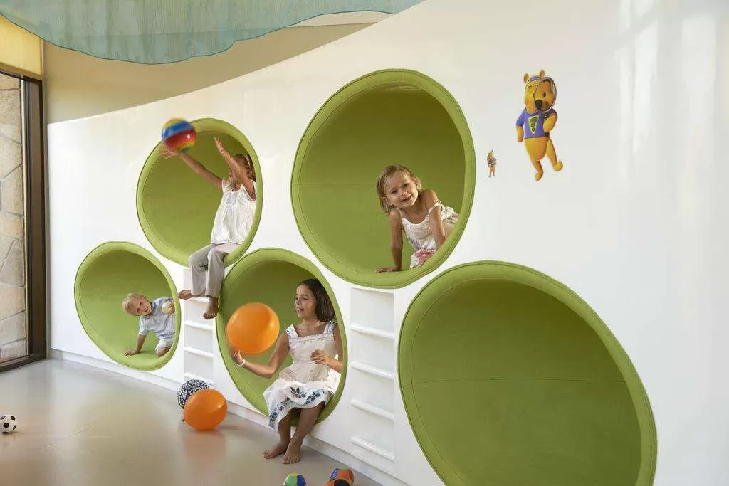 Бассейн; мини клуб (от 3 до 12); услуги няни (платно); в ресторане детское кресло; детское меню; детская игровая площадка; детская кровать (по запросу); дополнительная кровать для ребенка до 12 лет (раскладывающийся диван)