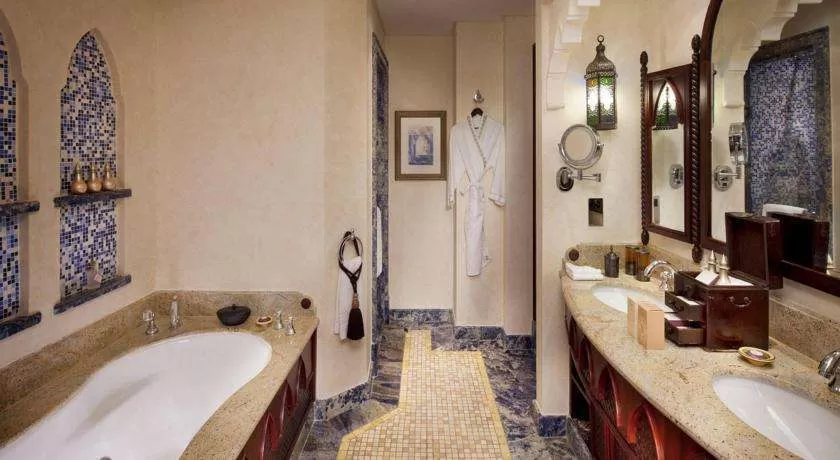 - 1- bedroom ocean suite (115 кв.м): в номере – большой балкон, спальня, гостиная, ванная комната с джакузи и душевой кабиной. Номер имеет вид на Персидский залив. Ванная комната облицована мрамором.