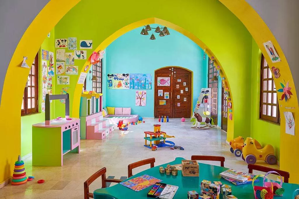Анимация, детские стульчики в ресторане, детская кроватка, игровая площадка, бассейн, горки в аквапарке, няня (за доп плату), мини-клуб (4-12 лет), дискотека.