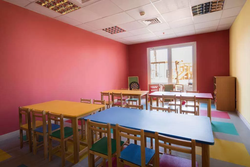 3 бассейна, детское меню в ресторане, мини-клуб, игровая площадка, детские стульчики в ресторане, детская кроватка, анимация, водные горки в аквапарке.
