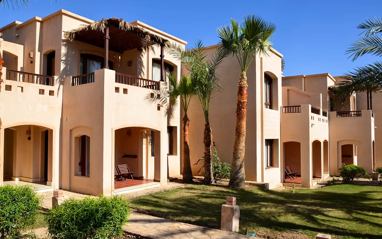Отель состоит из основного 1-этажного здания (только ресепшен) и комплекса 2-этажных корпусов.