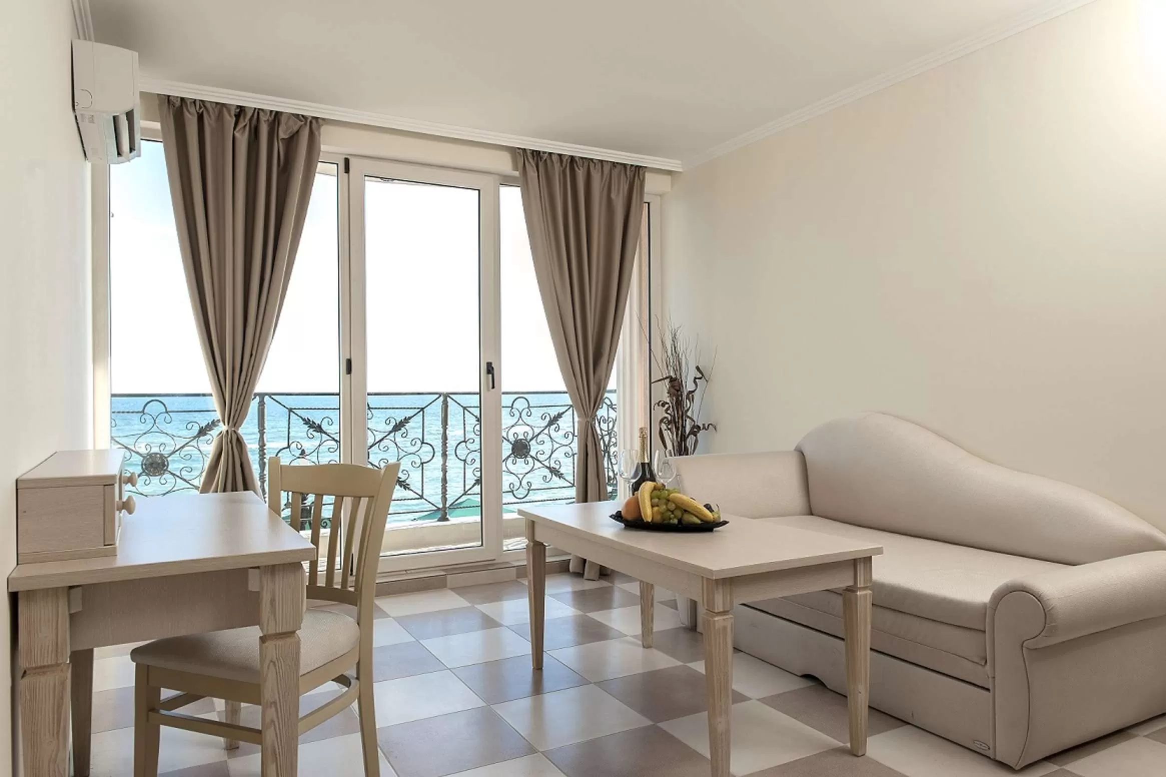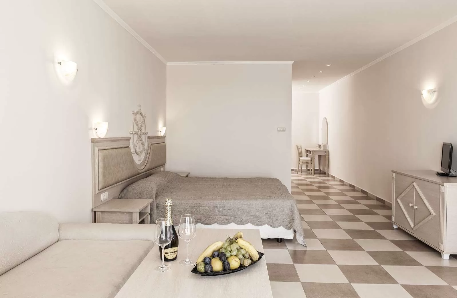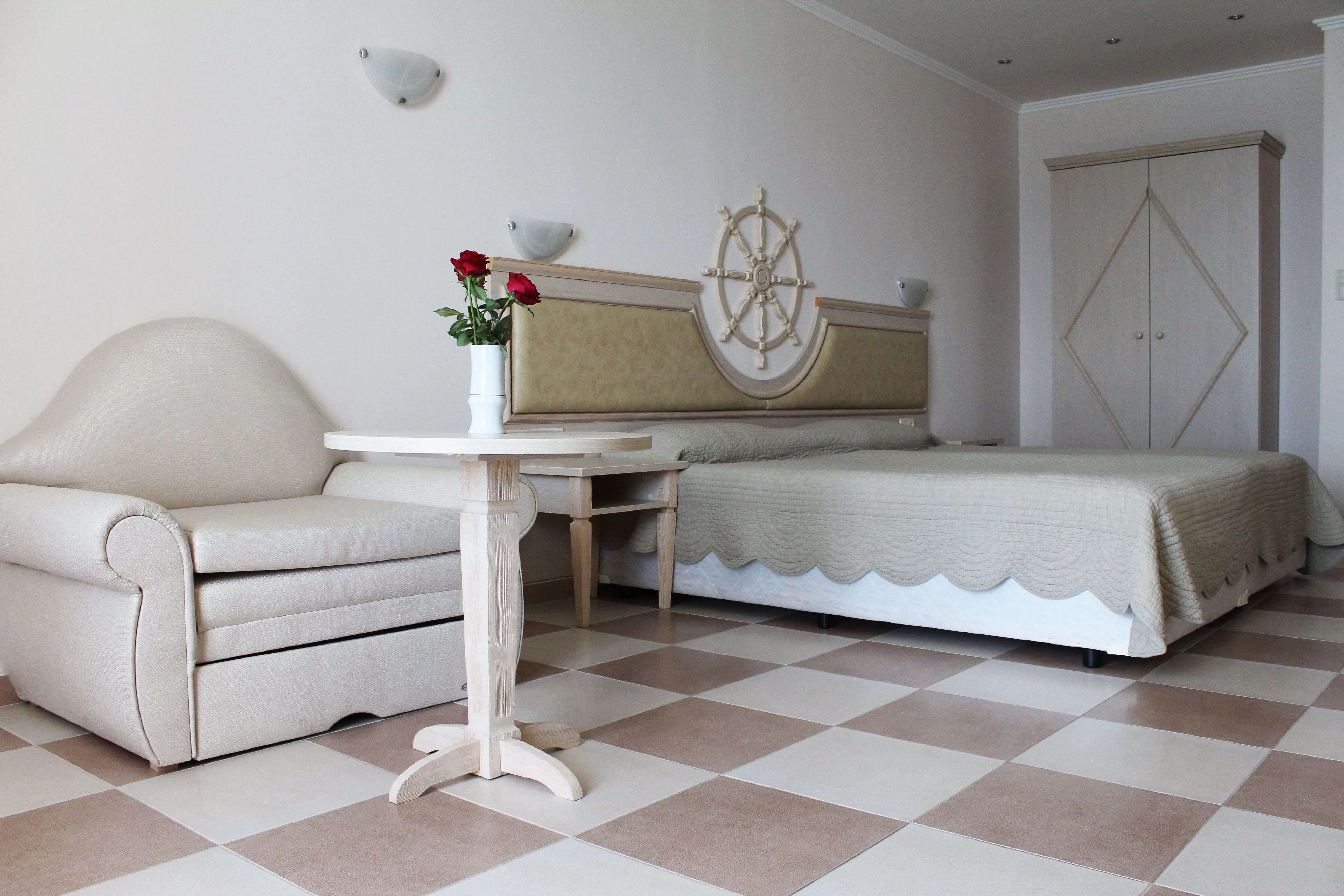 Кондиционер; телевизор; телефон; мини-бар; сейф; балкон или терасса/стол и два стула; дополнительная кровать - раскладное кресло; уборка-каждый день; смена полотенец-каждый день; постельное бельё-два раза в неделю.