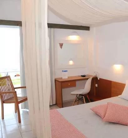 Частный песчаный пляж, сады, неповторимые виды. Отель состоит из центрального здания и 6 двухэтажных. Выбор комфортабельных номеров, ресторан, таверна у моря, 3 бара, бассейн, интернет, фитнес-центр, услуги для детей, спорт и развлекательные программы. Подойдет для комфортного семейного отдыха.