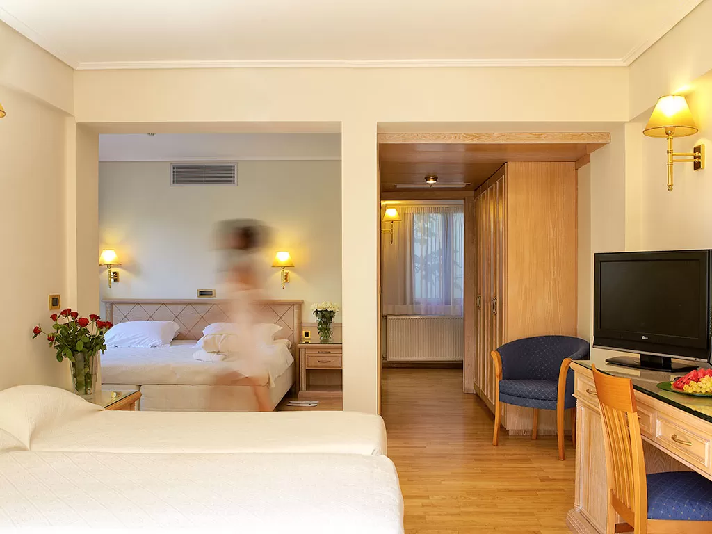 В номерах: кондиционер, сейф (бесплатно), мини-бар, Wi-Fi интернет (бесплатно), спутниковое телевидение, прямой телефон, ванная комната с телефоном (ванна/душ), фен, зеркало для макияжа, халаты и тапочки, утюг и гладильная доска (по запросу), балкон/веранда.