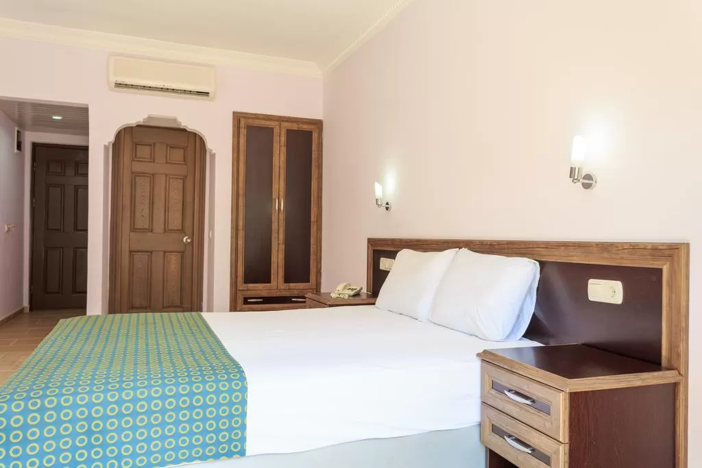 Фен в номере, индивидуальный кондиционер, пол - плитка, балкон, мини-бар (вода ежедневно), уборка номера - ежедневно, ТВ - спутниковое (есть русский канал), телефон, душ, сейф (платно), смена белья - 2 раза в неделю).