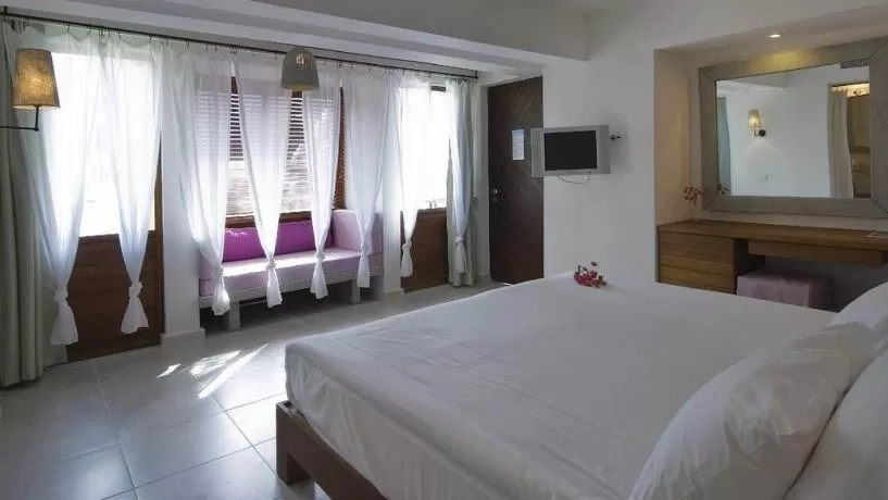 Всего 330 номеров: double room Сategory A (40 кв. м., включая террасу, терраса, вид на море, вход в номер и ванную комнату с террасы, максимум 3 чел.), номера family room Сategory B (50 кв. м, вид на море и бассейн, две несмежные спальни, гардеробная, отдельная терраса, максимум 4 чел.), номера small double room Сategory C (30 кв. м., частичный вид на море и территорию отеля, номер без балкона и террасы, максимум 3 чел.), номера single room Сategory D (20 кв. м., номер без террасы и балкона, максимум 1 чел.)