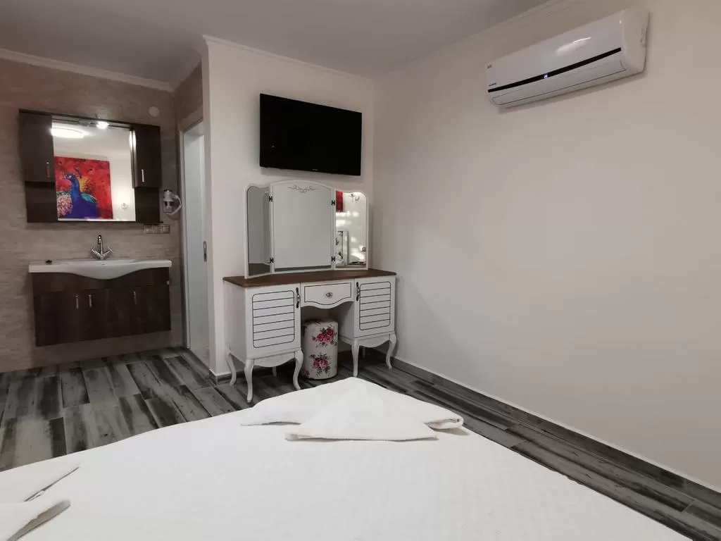 Фен в номере, кондиционер, пол - плитка, мини-бар, уборка номера - ежедневно, ТВ - спутниковое (есть русский канал), телефон, душ, Wi-Fi (бесплатно), смена белья - 2 раза в неделю, балкон или терраса.