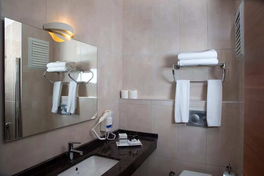 Фен в номере, центральный или индивидуальный кондиционер, пол – плитка, балкон, мини-бар (бесплатно), уборка номера - ежедневно, ТВ - спутниковое (есть русский канал), телефон, душ, сейф (платно), смена белья - 2 раза в неделю.