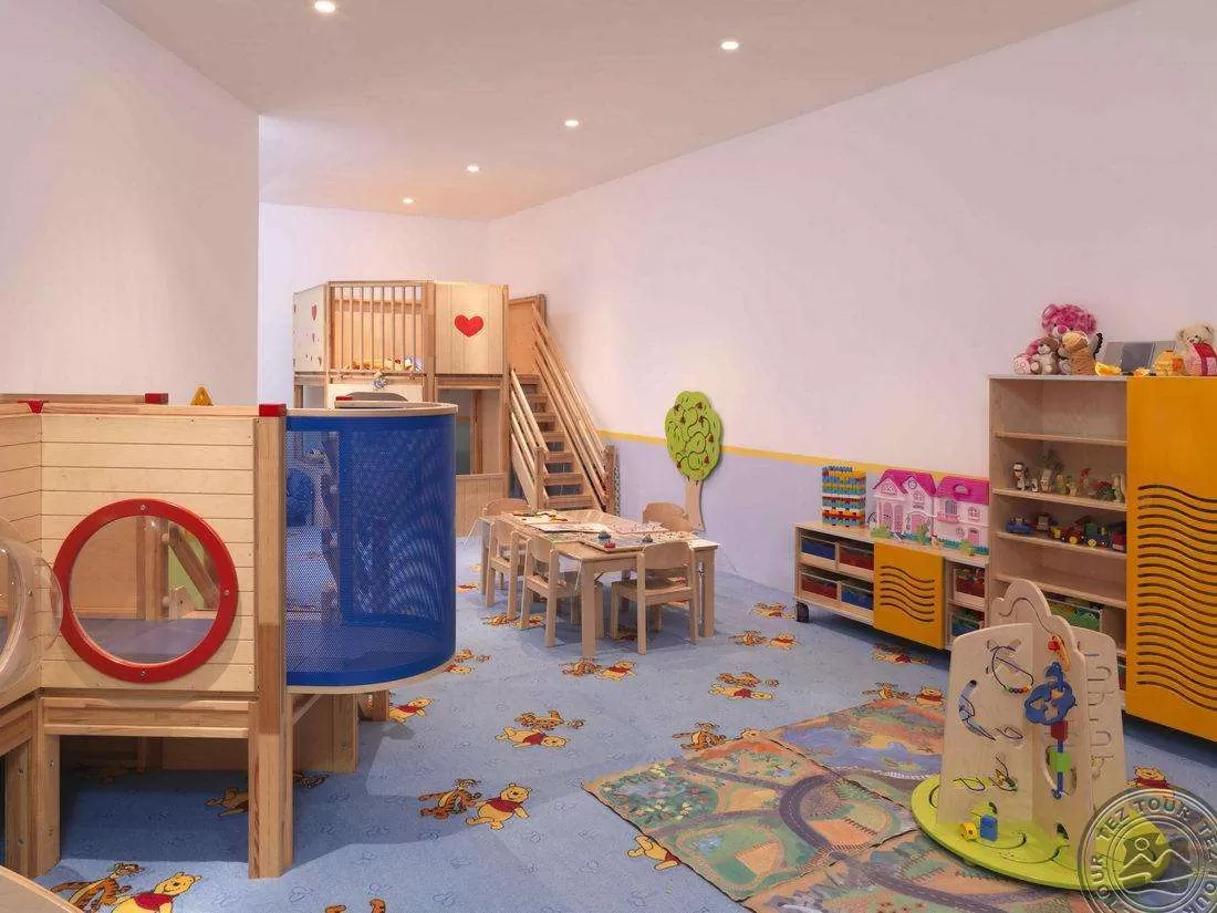 бассейн, мини-клуб для малышей и подростков раздельно, игровая комната и площадка, детское меню и высокие стульчики, няня (по запросу, платно).