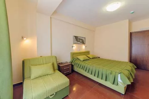 DBL STD: 25м2, расположены в корпусе А и имеют категорию 3* - терраса, французская кровать + раскладной диван, плазменное ТВ, сейф, холодильник, фен.