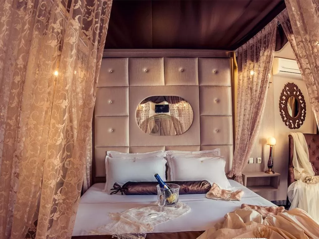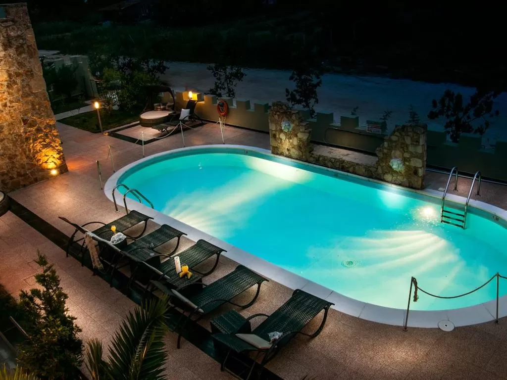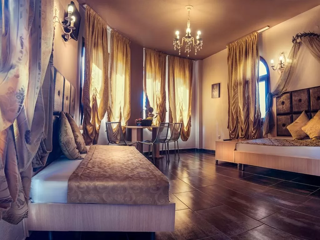 Необыкновенная архитектура в стиле средневековых замков, преобладание натурального камня и дерева, роскошные комфортабельные сюиты, интернет, бассейн, джакузи. Идеально подойдет для спокойного романтичного отдыха.