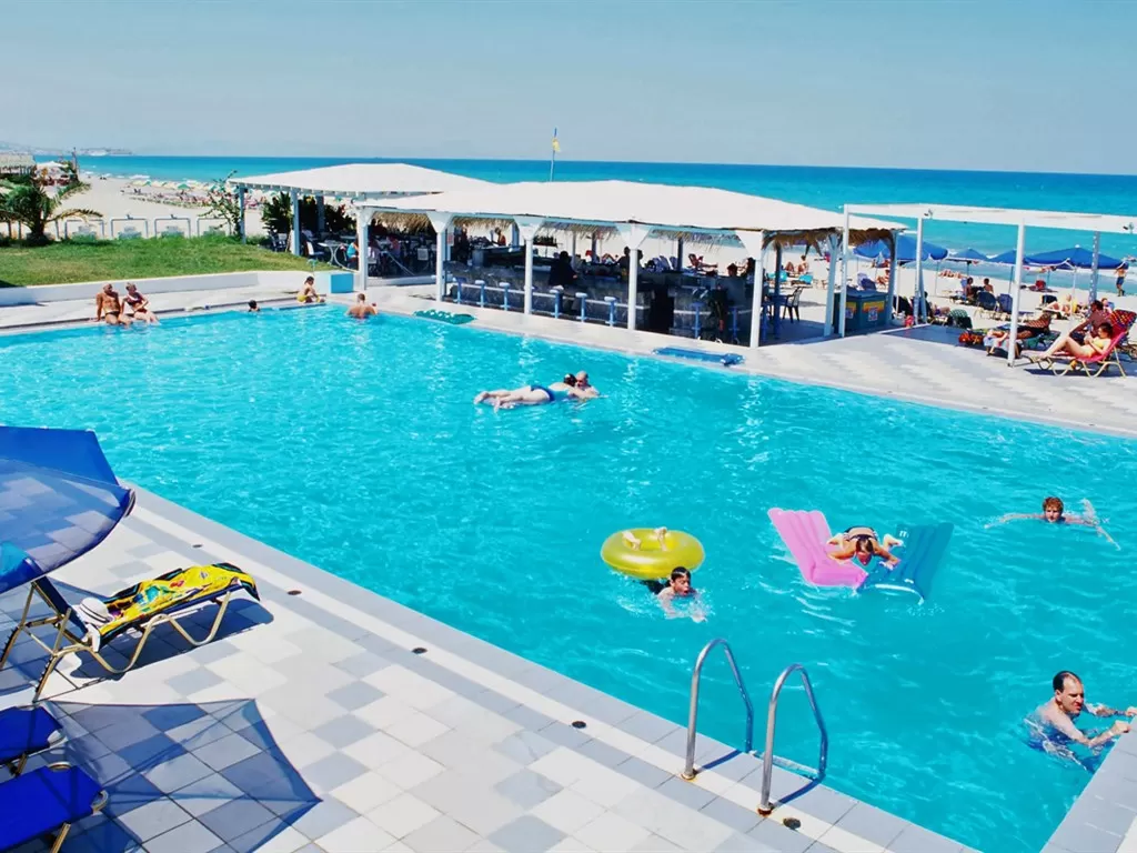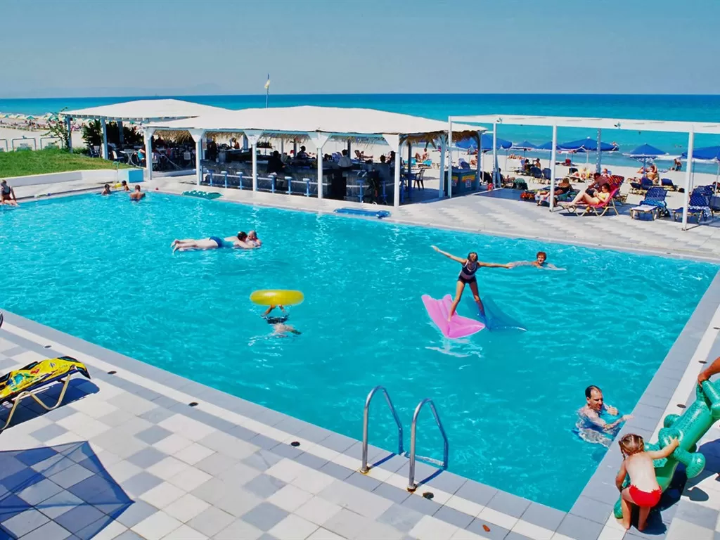 Бассейн с морской водой, лежаки и зонты у бассейна (€); водные виды спорта в 100 м от отеля.
