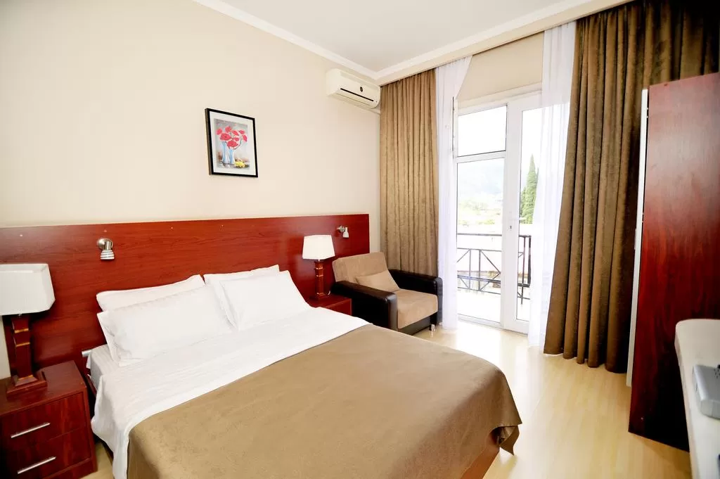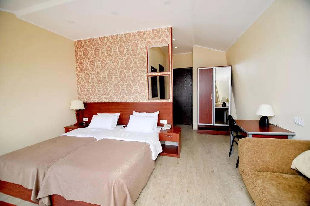 В номере: кондиционер, телевизор, телефон, мини-бар, сейф. Уборка номеров: ежедневно.