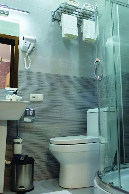 Кондиционер, телевизор, телефон, сейф, мини-бар, мини-кухня, холодильник, кухонные принадлежности, ванна / душ, фен, полотенца.