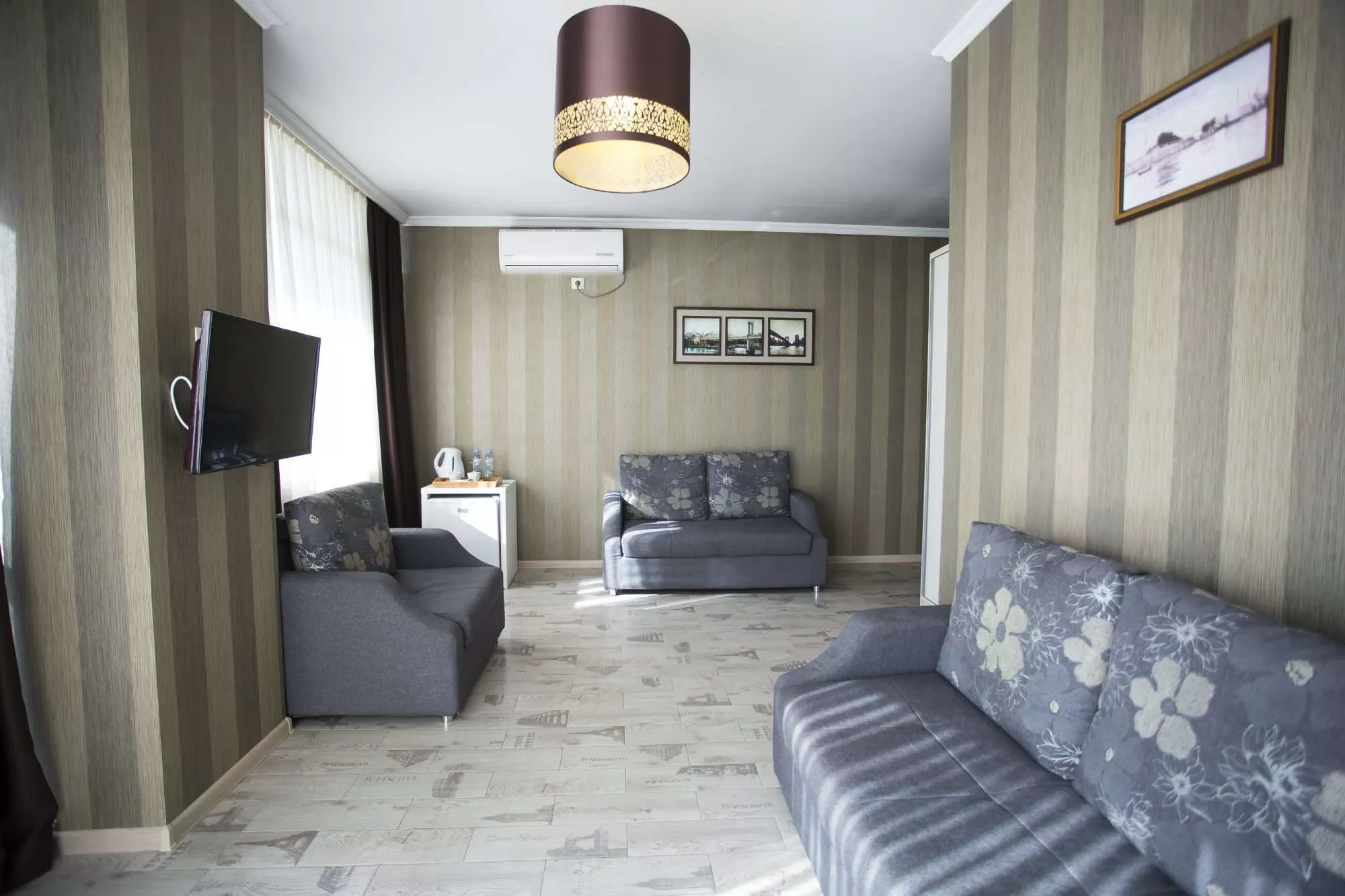 Номера располагают кондиционером, телевизором с плоским экраном и кабельными каналами, холодильником и феном.
