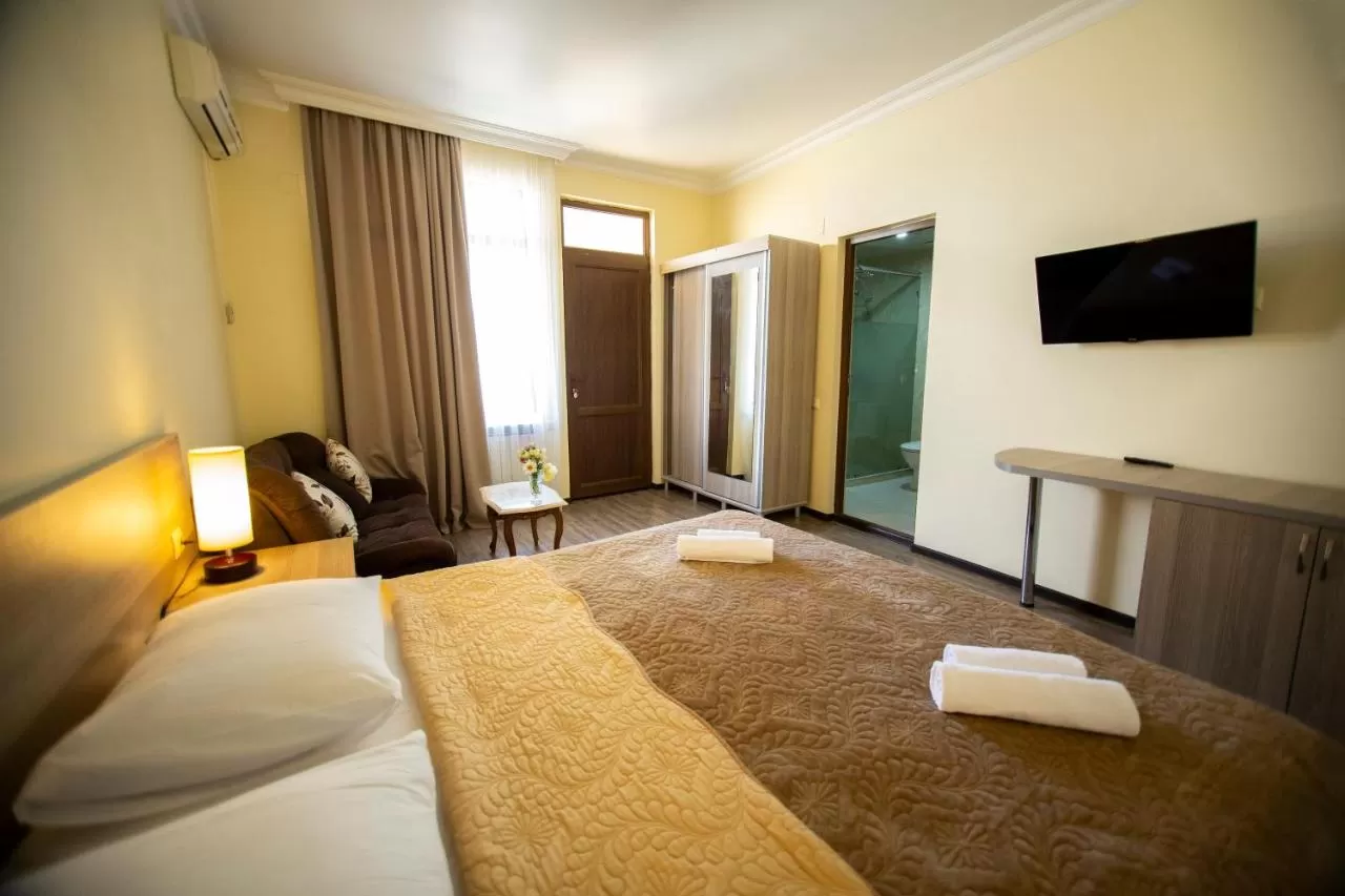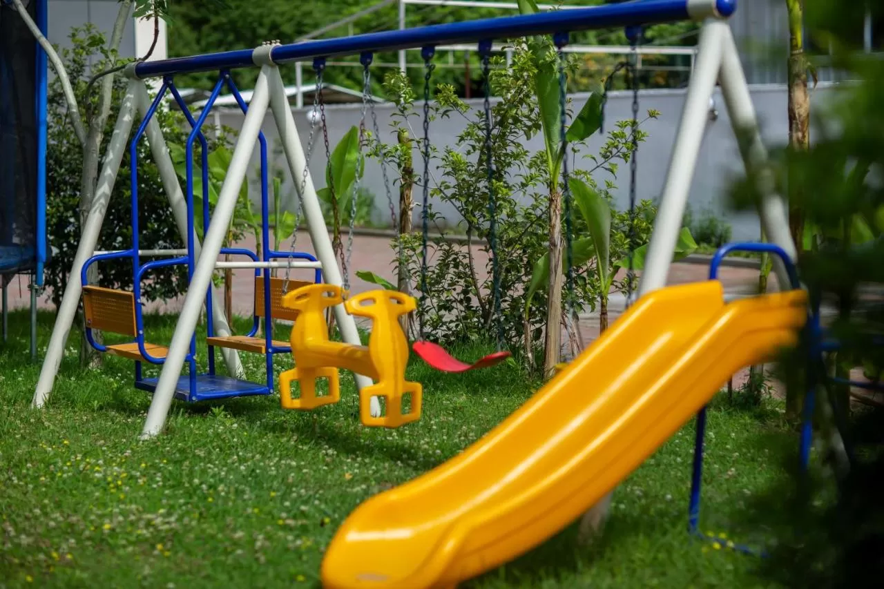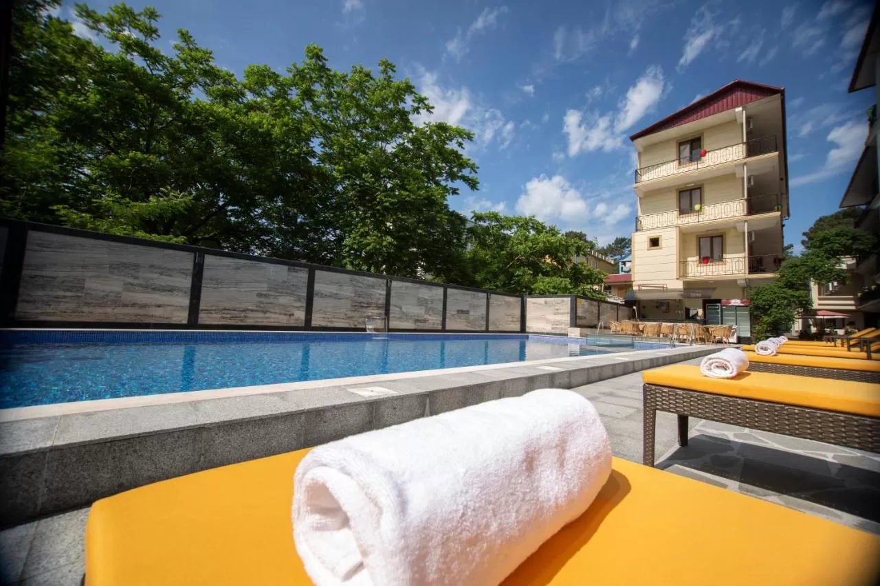 Для комфортабельного отдыха территория отеля оснащена: бассейном с мелководной зоной для детей, живописным садом с водопадом, детской игровой зоной и кафе, где можно насладиться настоящей грузинской кухней
